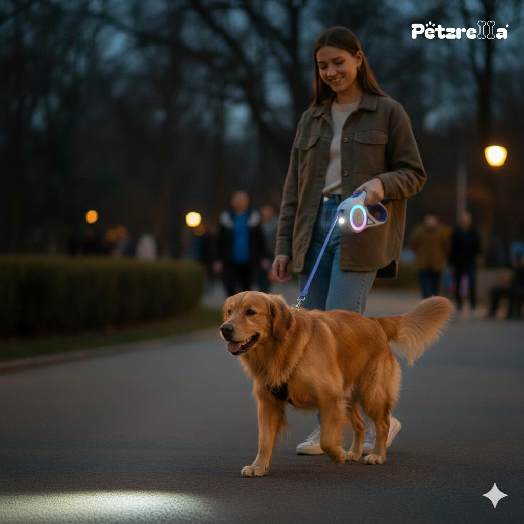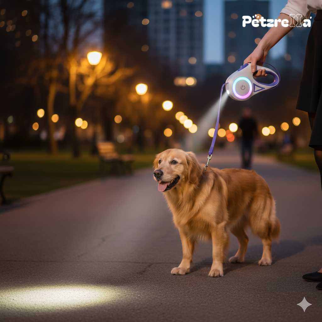 This automatic retractable dog leash combines smooth control with built-in LED lighting for safer walks at any time of day. The ergonomic design and strong retractable rope make daily walks easier, safer, and more comfortable.