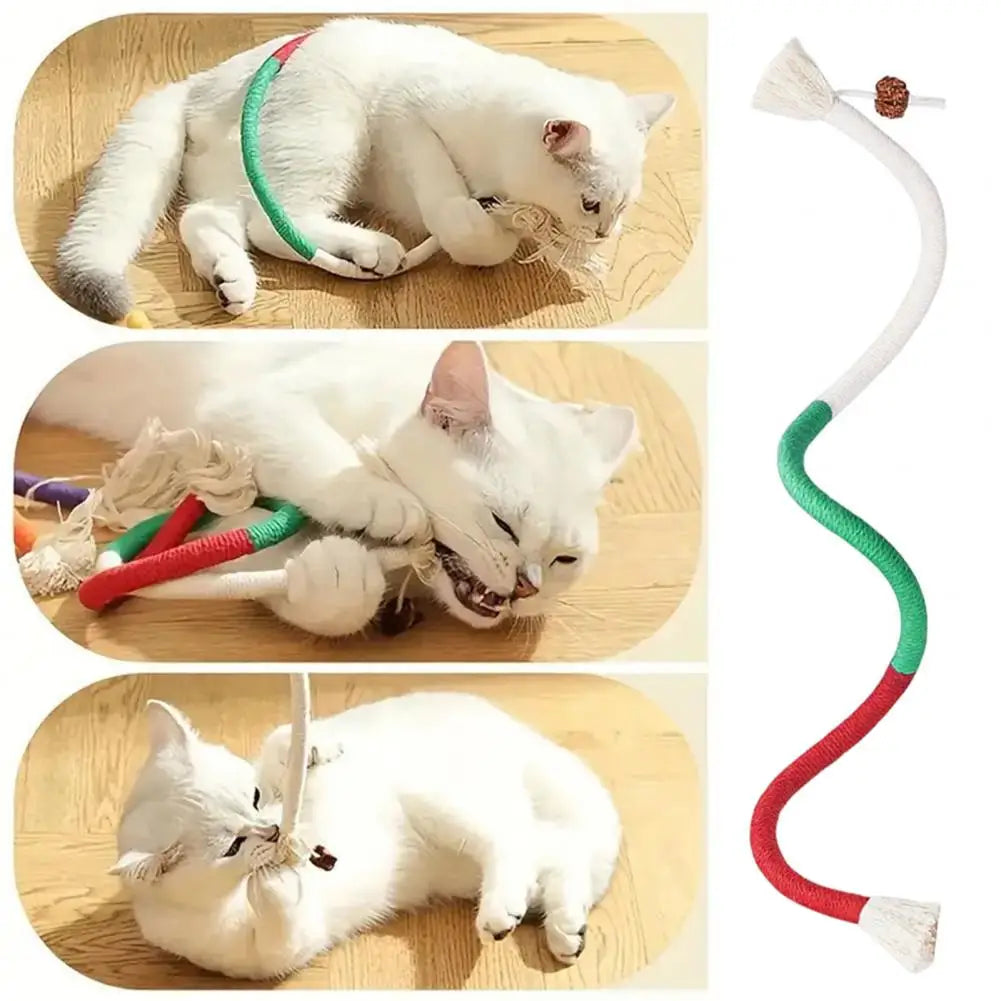 This interactive rope toy is designed to keep cats mentally and physically engaged through natural chewing, batting, and chasing behavior. Its flexible shape and textured surface encourage active play while helping satisfy instinctive chewing needs.