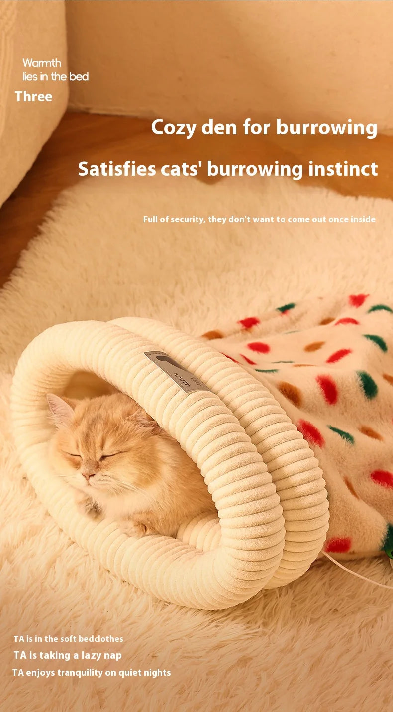 This soft, cloud-like cat sleeping bag creates a warm and secure retreat for your cat to rest and relax. The enclosed design helps cats feel protected while the plush interior provides deep comfort and cozy warmth.